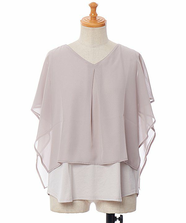 シフォンとカットソーのポンチョ風ブラウス。