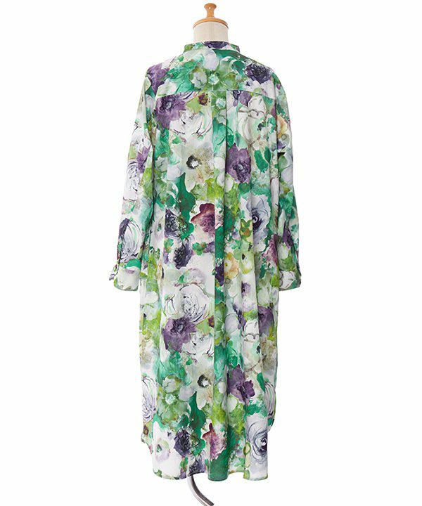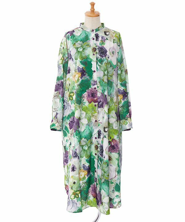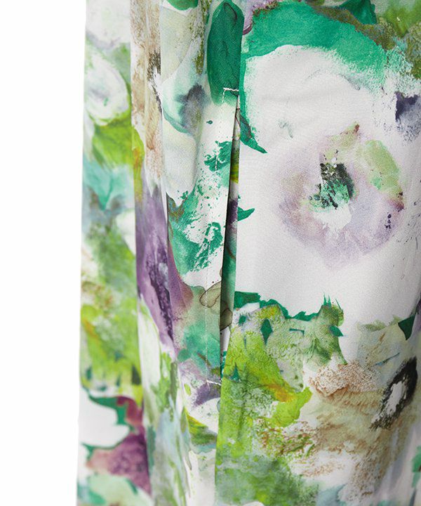 水に溶け込むように広がる、優雅で華やかな花柄が印象的なワンピース。