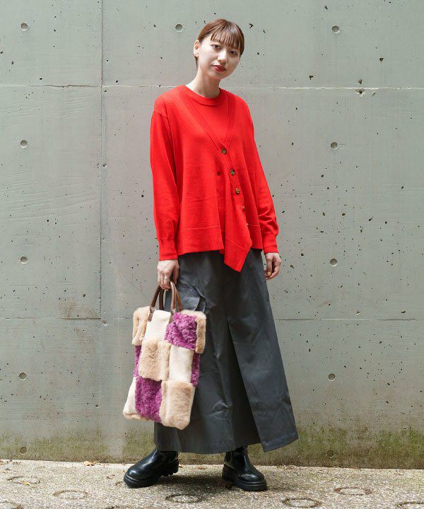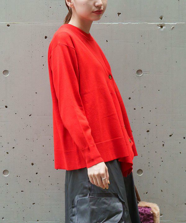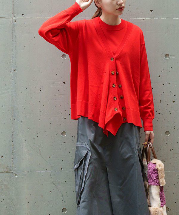 カーディガンは釦の留め方で 雰囲気の異なるスタイリングが楽しめます。