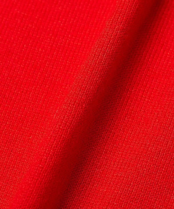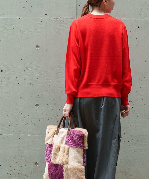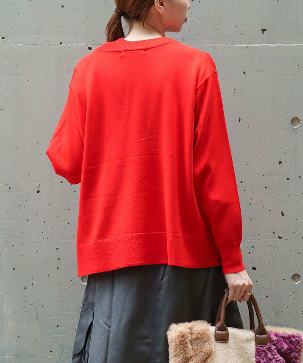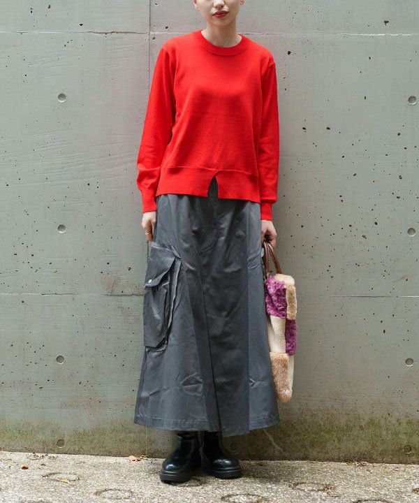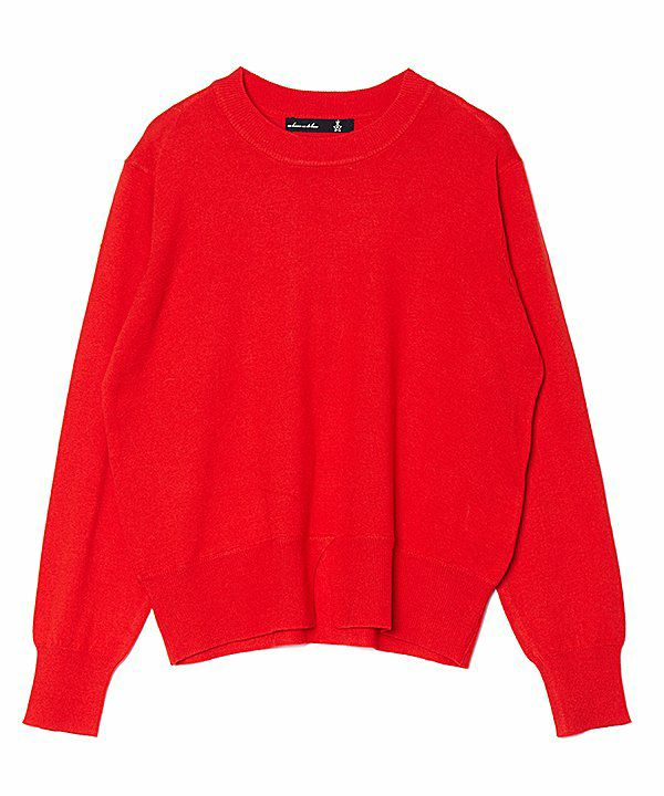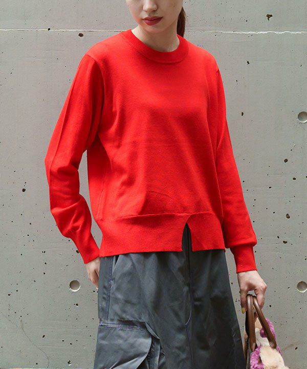 プルオーバーはシンプルな形ですが 裾リブの前中心にスリットを入れ遊び心をプラスしています。