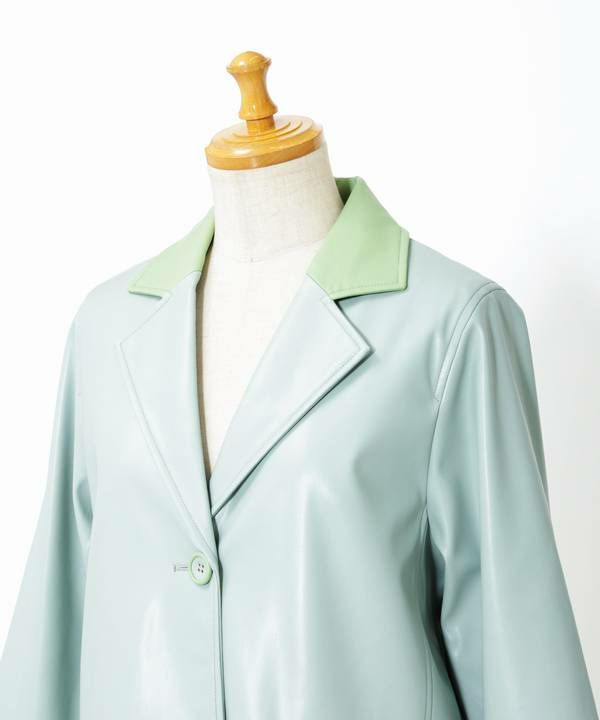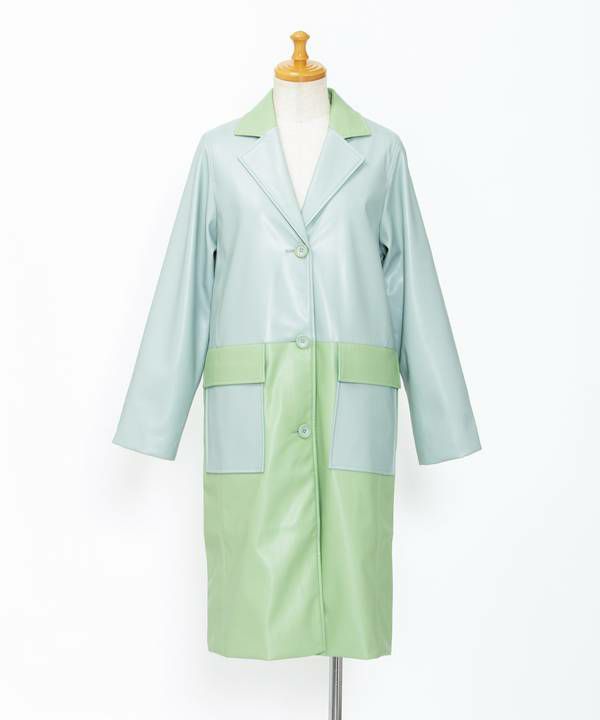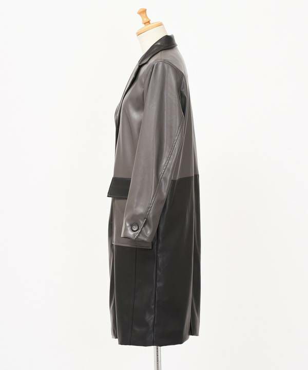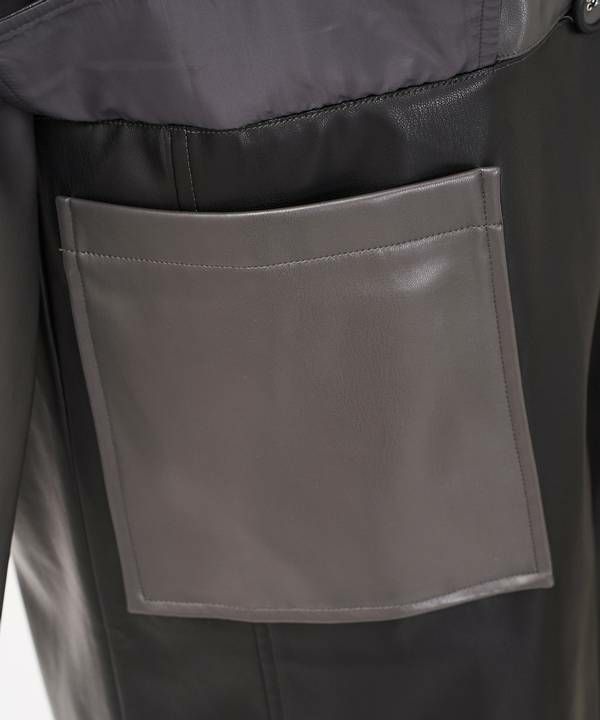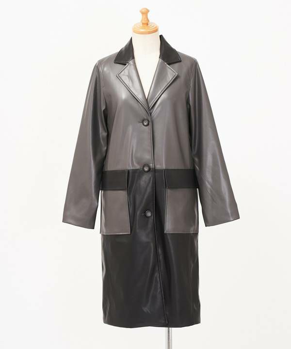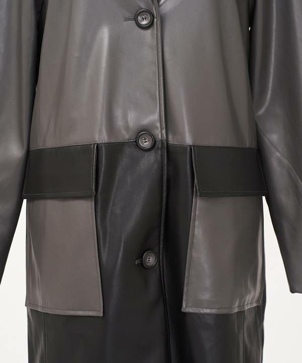 バイカラーVレザーコート