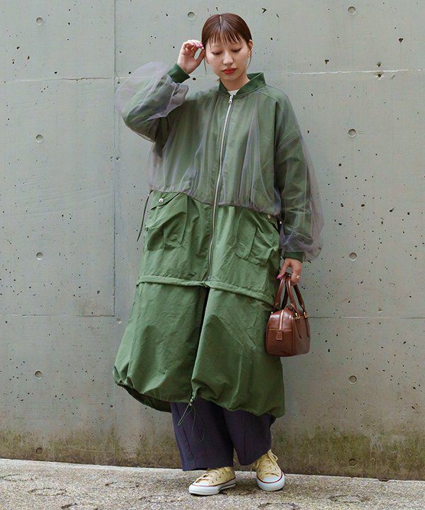 配色ナイロンコート