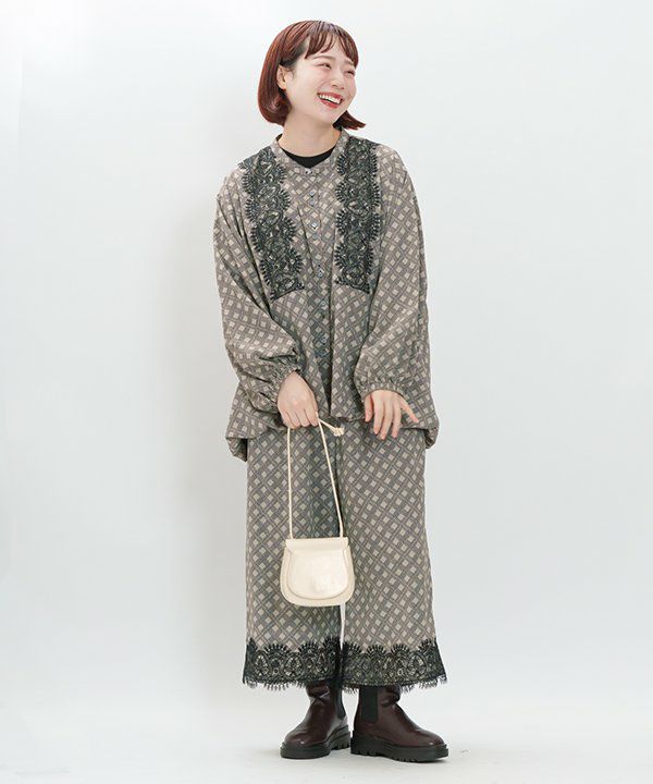 AS KNOW AS olaca マルバナ刺繍チェックPT