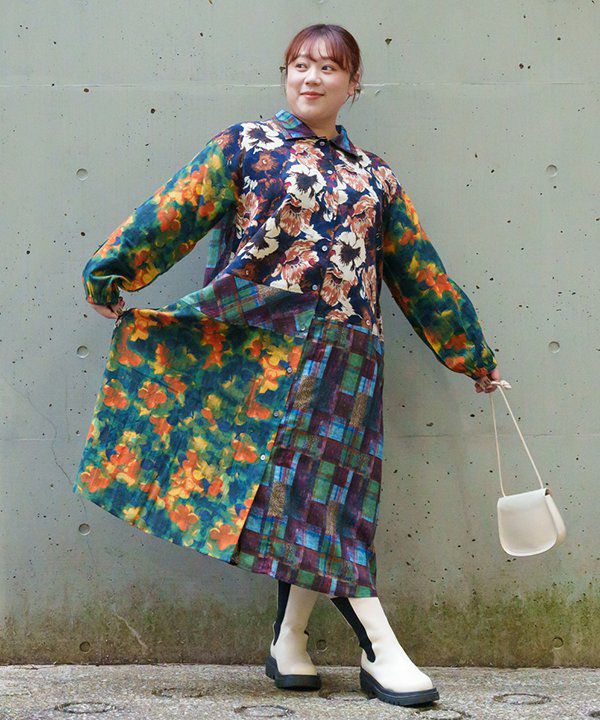 AS KNOW AS olaca モヤデカ花ワンピ