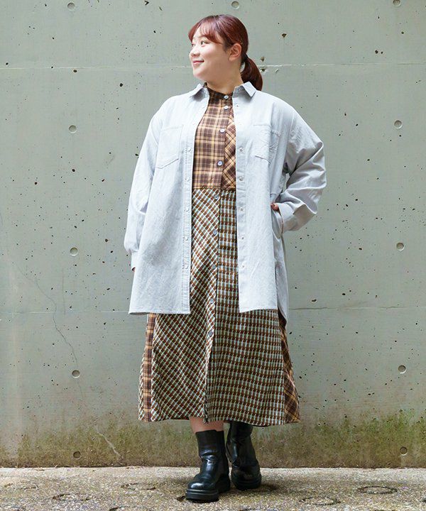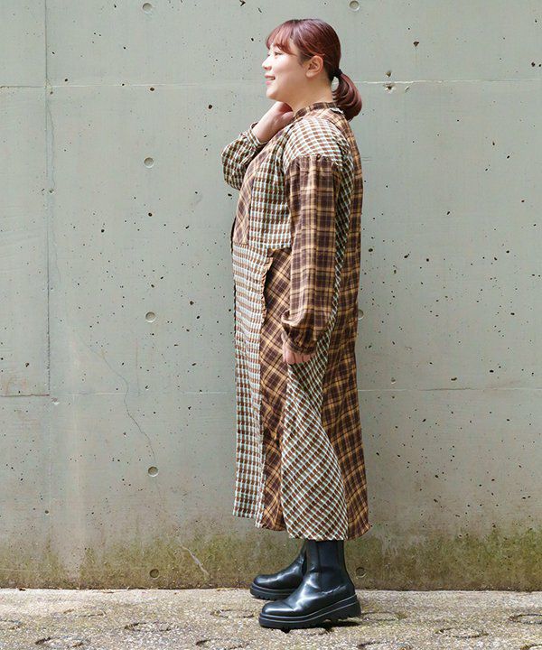 AS KNOW AS olaca チェックの小窓ワンピ