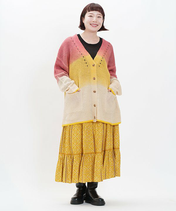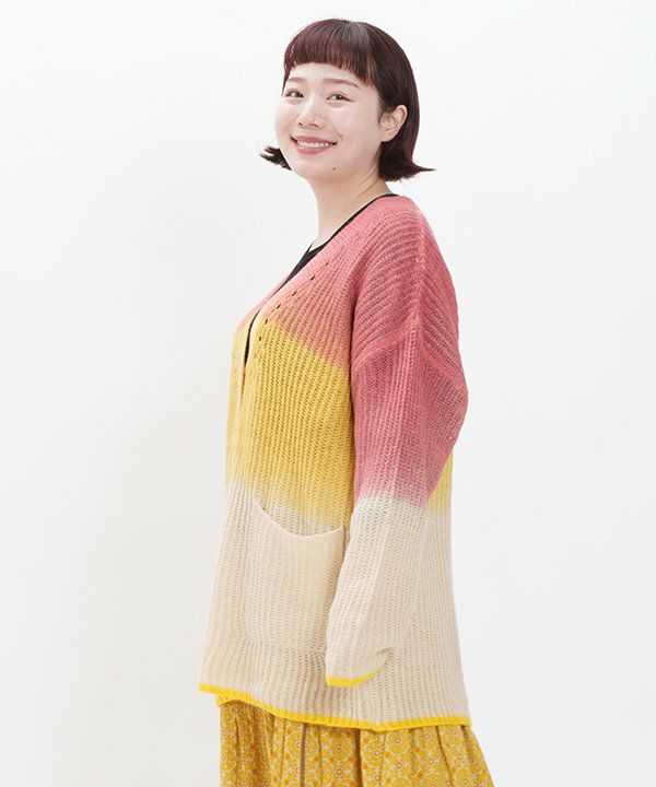 シンプルなニットカーディガンに グラデーションのプリントを施しました。
