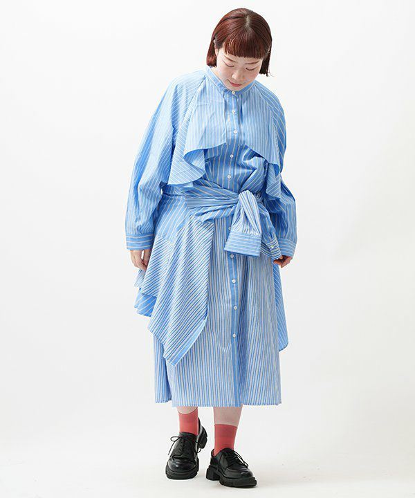 フレアー部分は2段にし 違う種類のストライプを配置しています。同シリーズのワンピースの腰に巻いたり 肩にかけたりすると 人とは違う目を引くコーディネイトに!