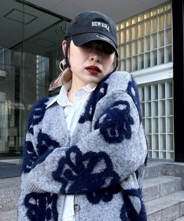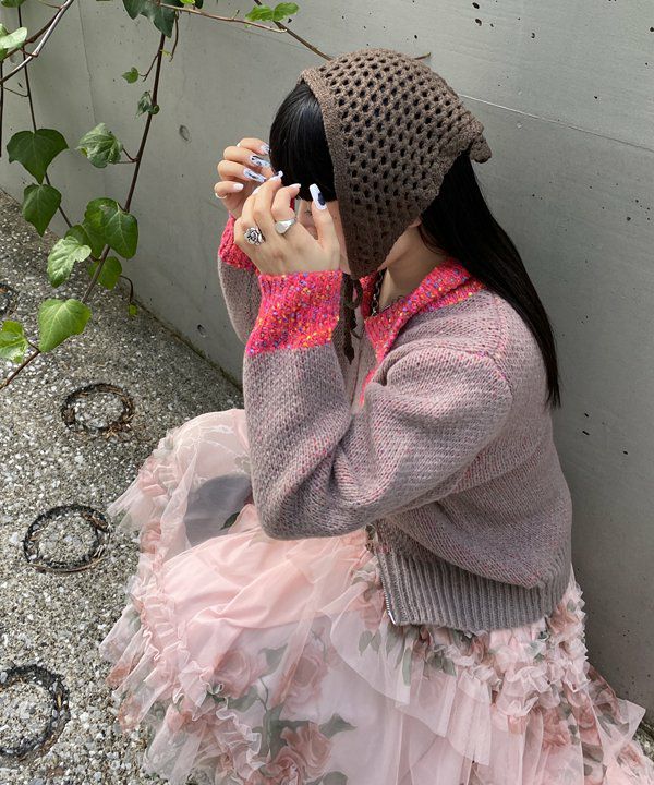 フェザー花柄ミドルカーデ