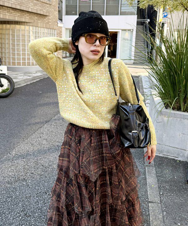 スパンコール輝くニット