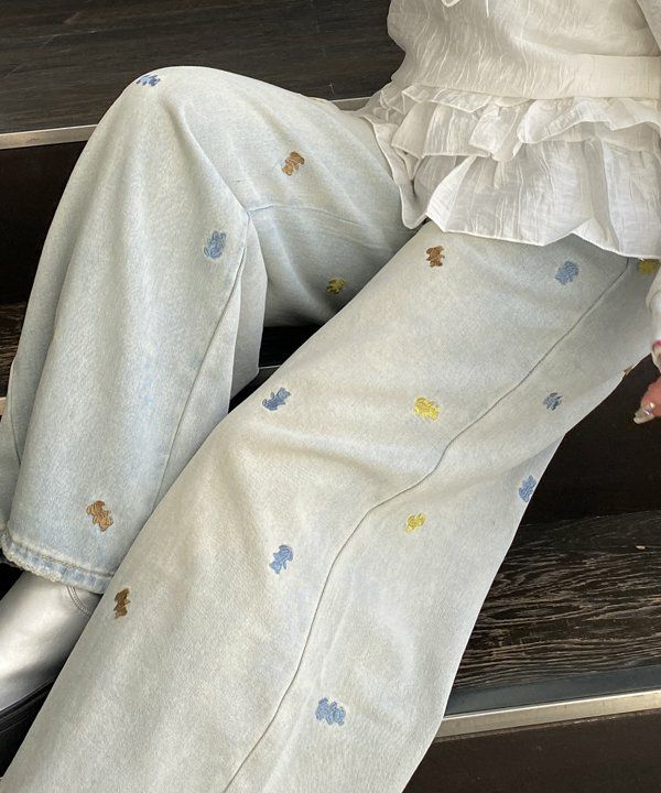 ◆遊び心満載のクマ刺繍デニム◆