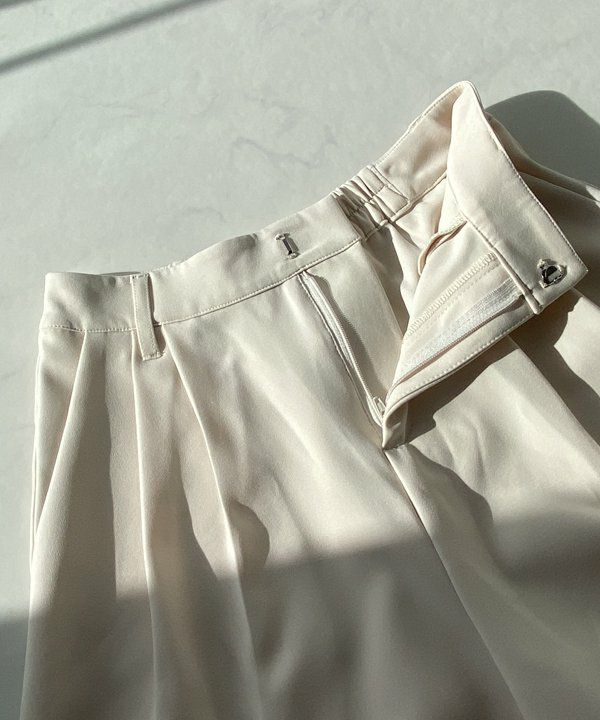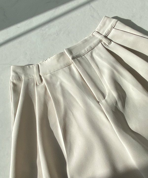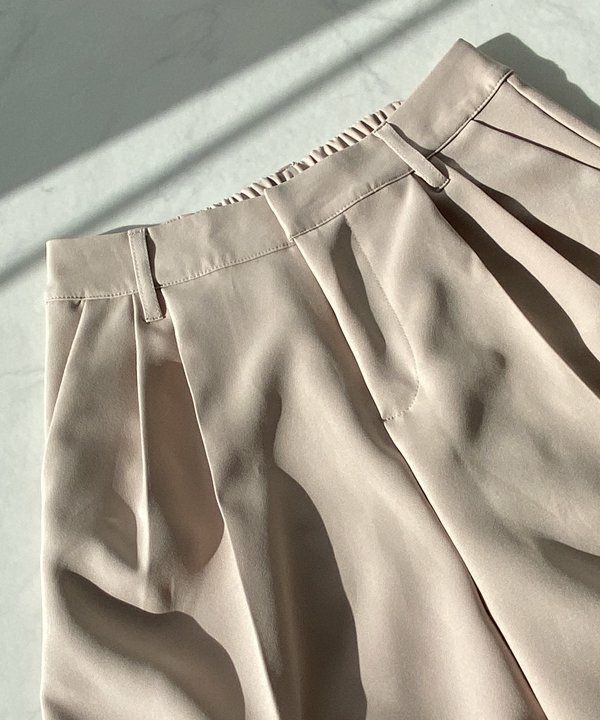 センタープレスで綺麗めに仕上げた1枚。タック部分が腰回りのすっきり見えを叶えてくれます。さらりとした生地感でどんなトップスとも相性抜群です◎