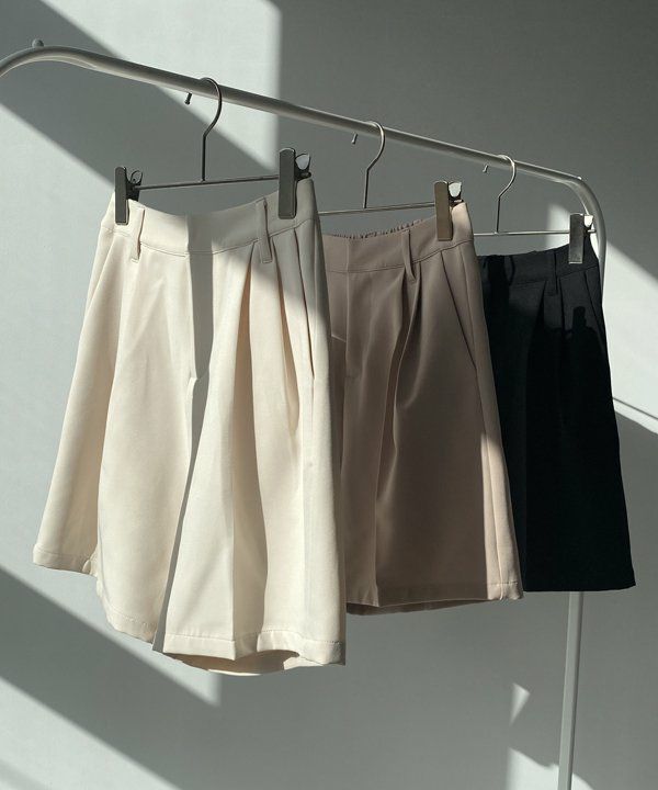 センタープレス&タックの入ったショートパンツ