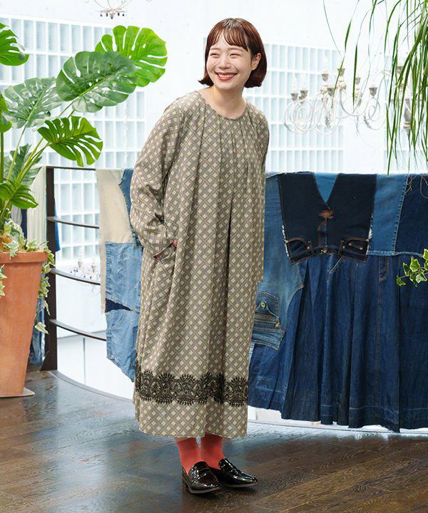 よく見ると小花模様があしらわれた格子柄が新鮮で、大人の可愛らしさを引き立てるワンピース。