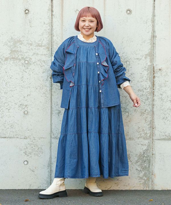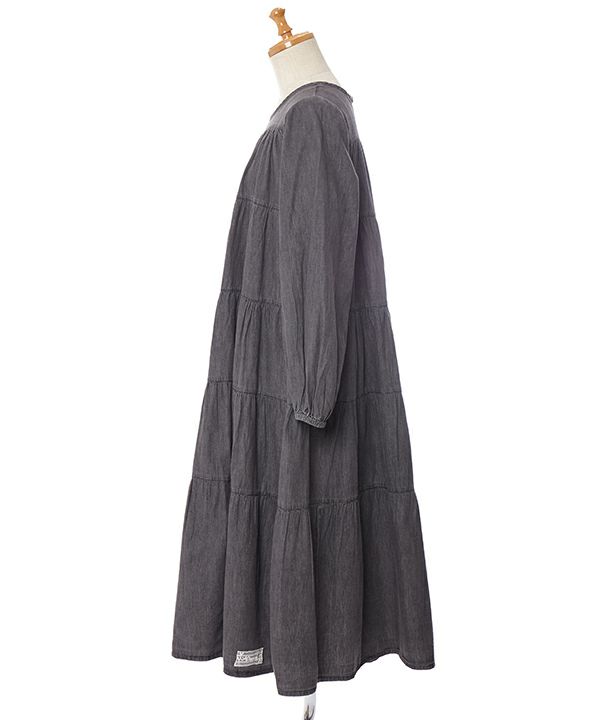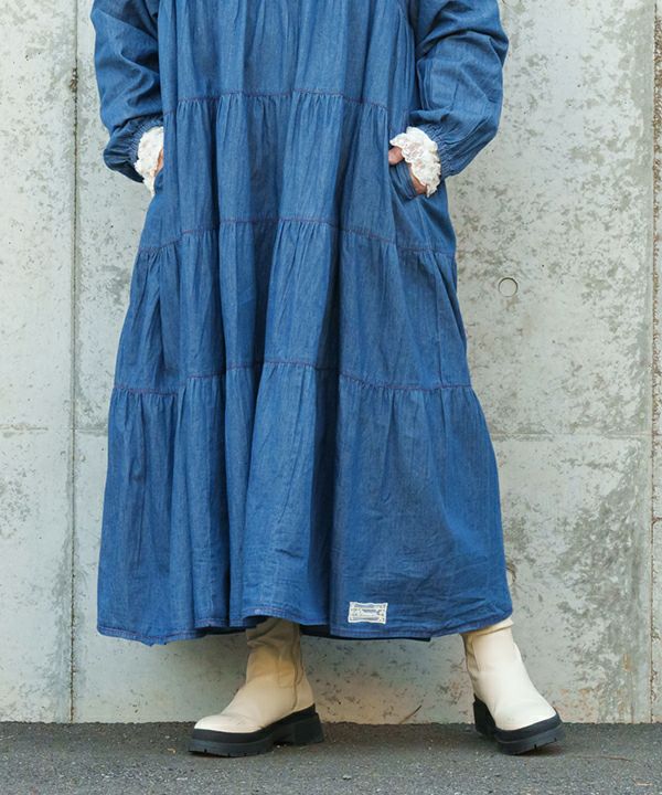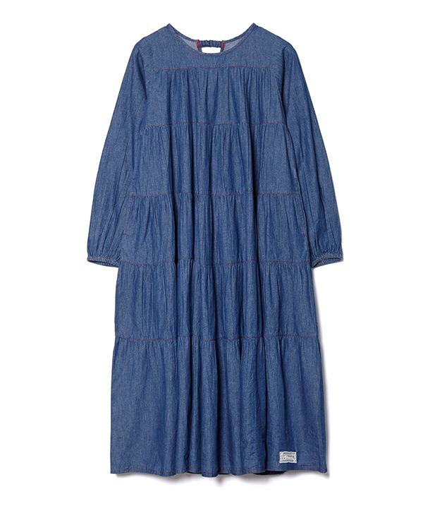 5段ギャザのデニムOP