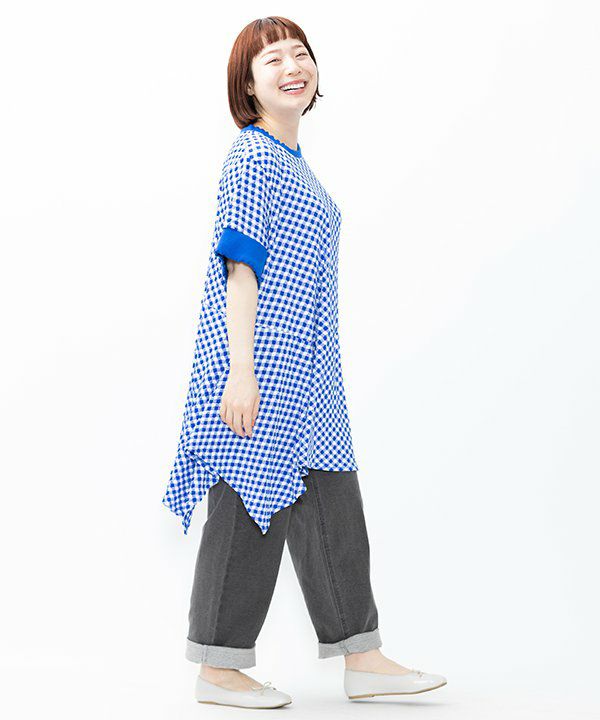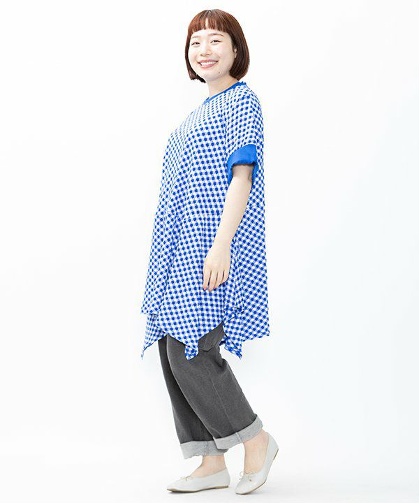 柔らかく伸縮性のあるチェック柄のポコポコ生地で裾の切替が可愛いチュニックを作りました。
