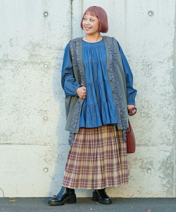 4段ギャザのデニムTN