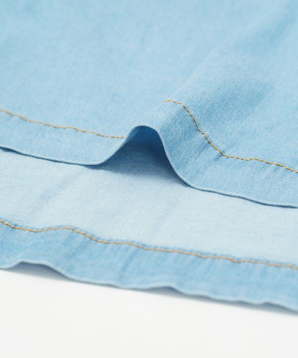 カジュアルなデニム素材を女性らしい柔らかい雰囲気に