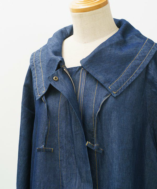 ヒラ衿デニムロングCO