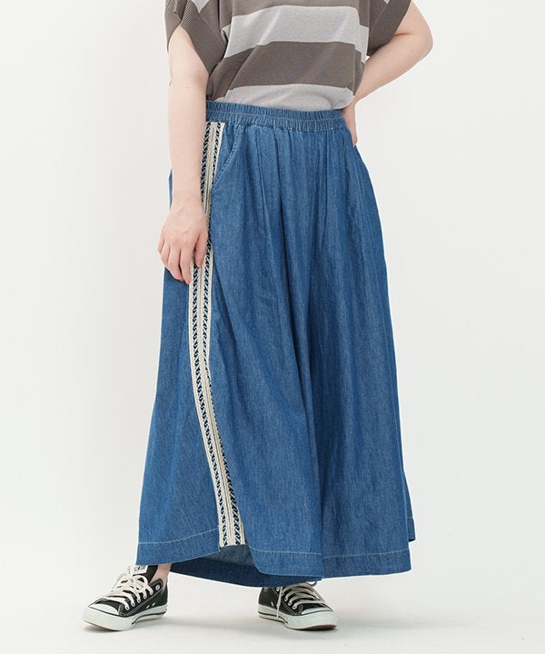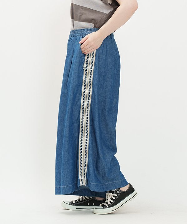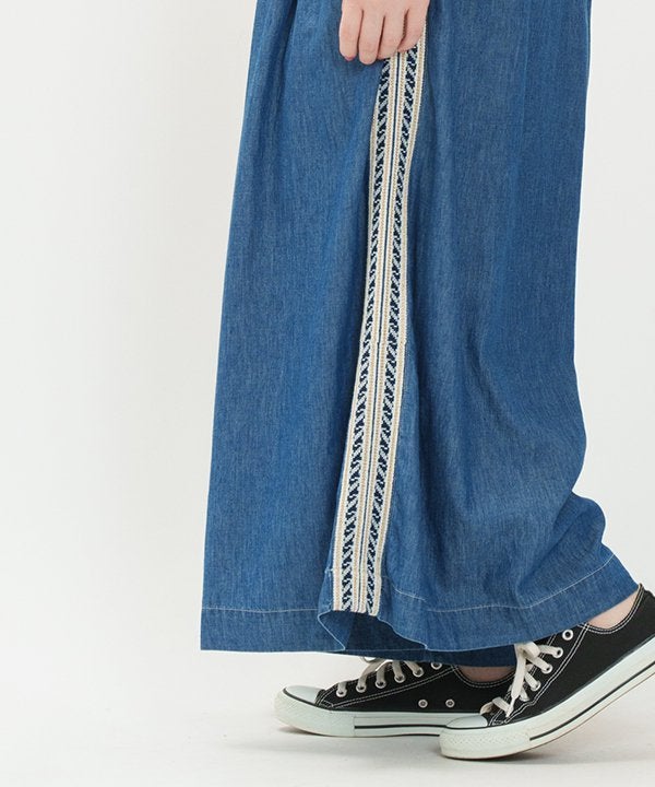 両脇にインドらしいブレードテープを叩き付けたワイドパンツです。