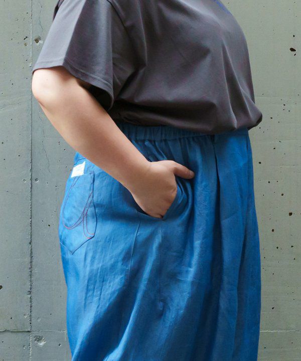 ほどよい光沢感があり、ウエストのタックとゆとりのあるシルエットですっきりと上品な印象に!