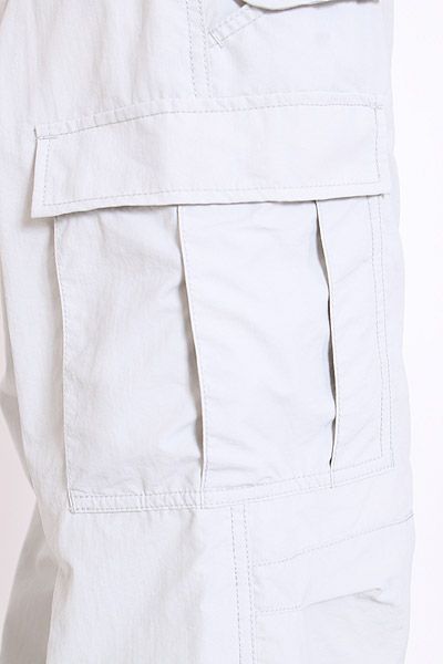 シャカシャカとした素材で春先にとても大活躍するカーゴパンツ。ミリタリーのカーゴパンツらしいボリューム感のあるサイズ感!