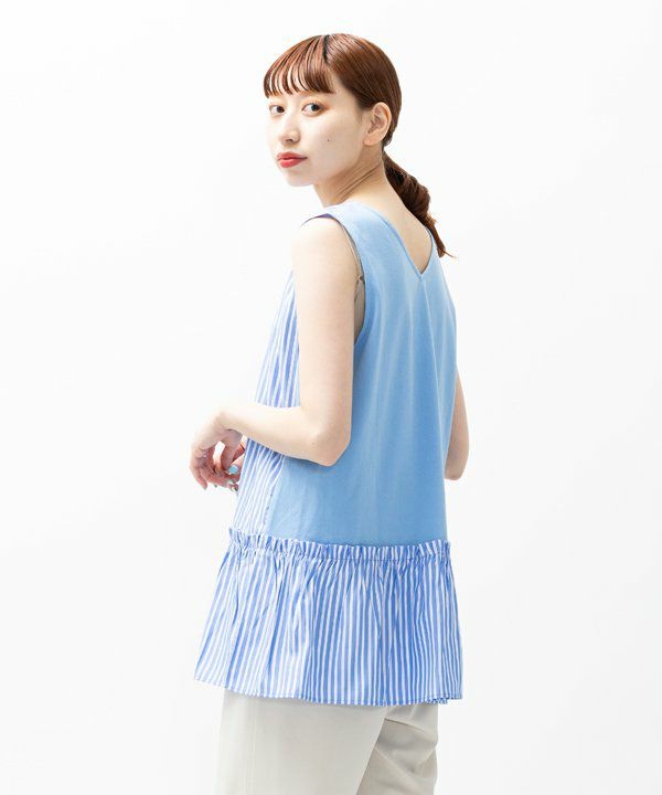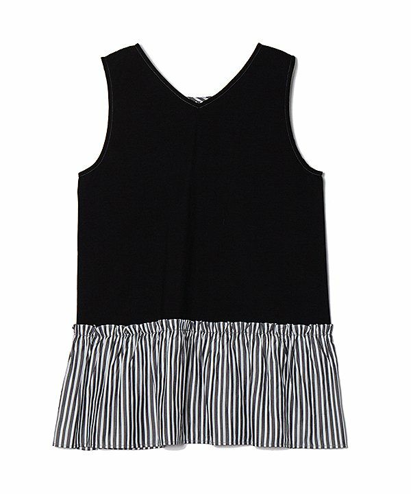裾がフリルになっていますがフェミニンすぎず ボリュームが押さえられたタンクに仕上げました。