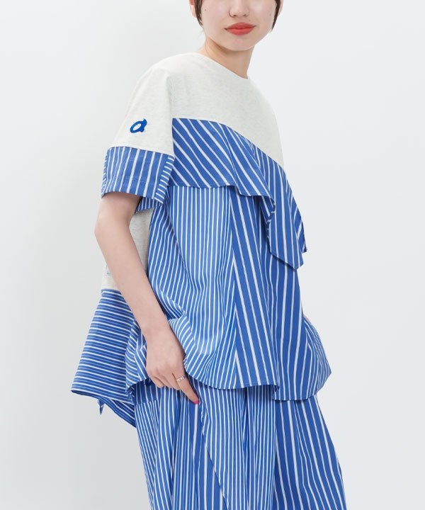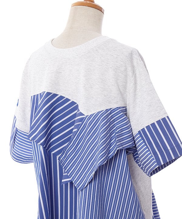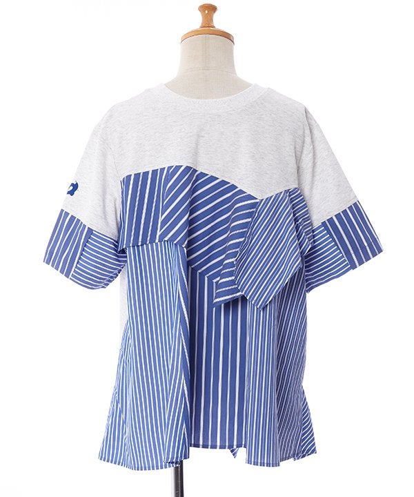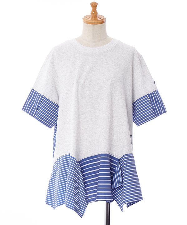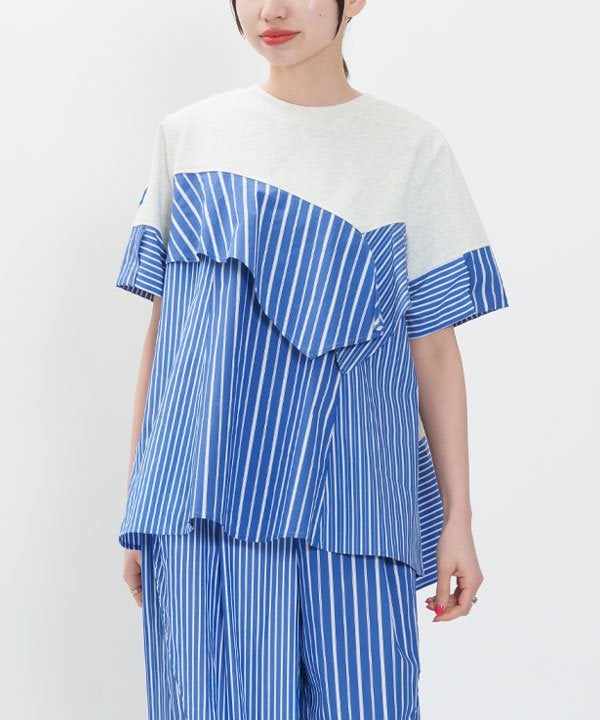 ストライプ3種とカットソーを組み合わせた欲張りTシャツの登場です。
