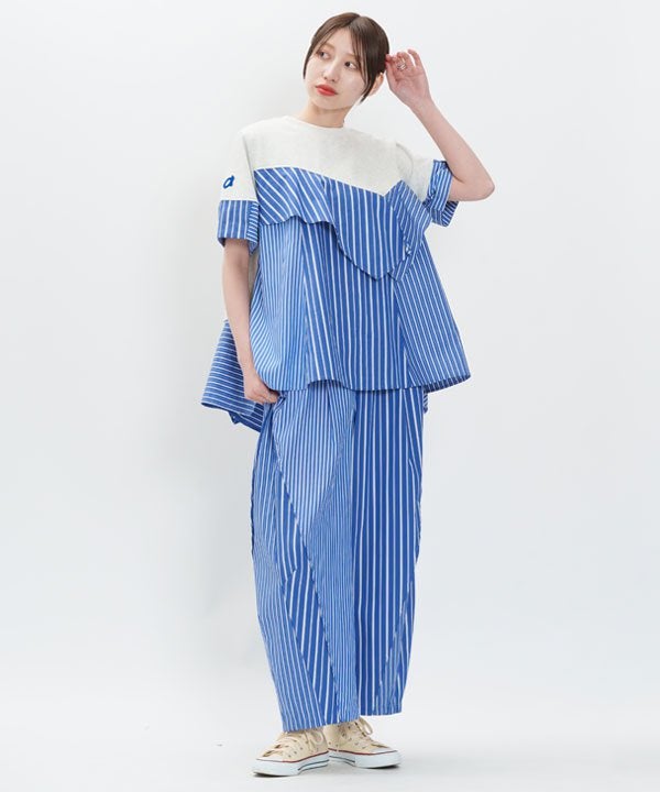 袖はタックで作るパフスリーブで、途中からストライプに切り替えています。