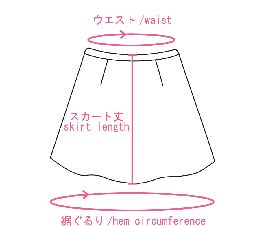 スカート丈/skirt length:前ウエスト上橋から裾までの長さ