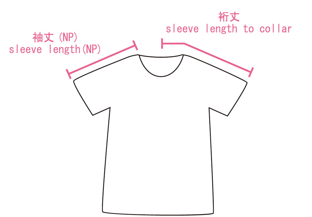 袖丈(NP)/sleeve length(NP):肩の一番高いところ(NP=ネックポイント)から袖口までの長さ