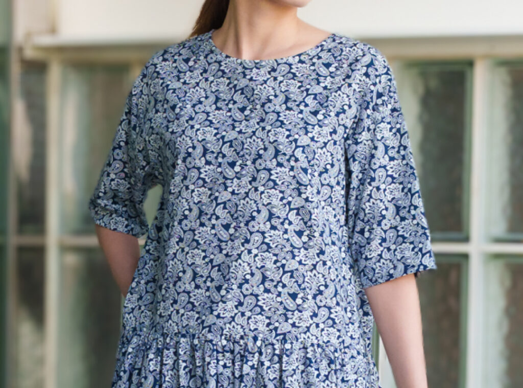 華やかな見た目と、やさしい着心地を両立した一枚です。