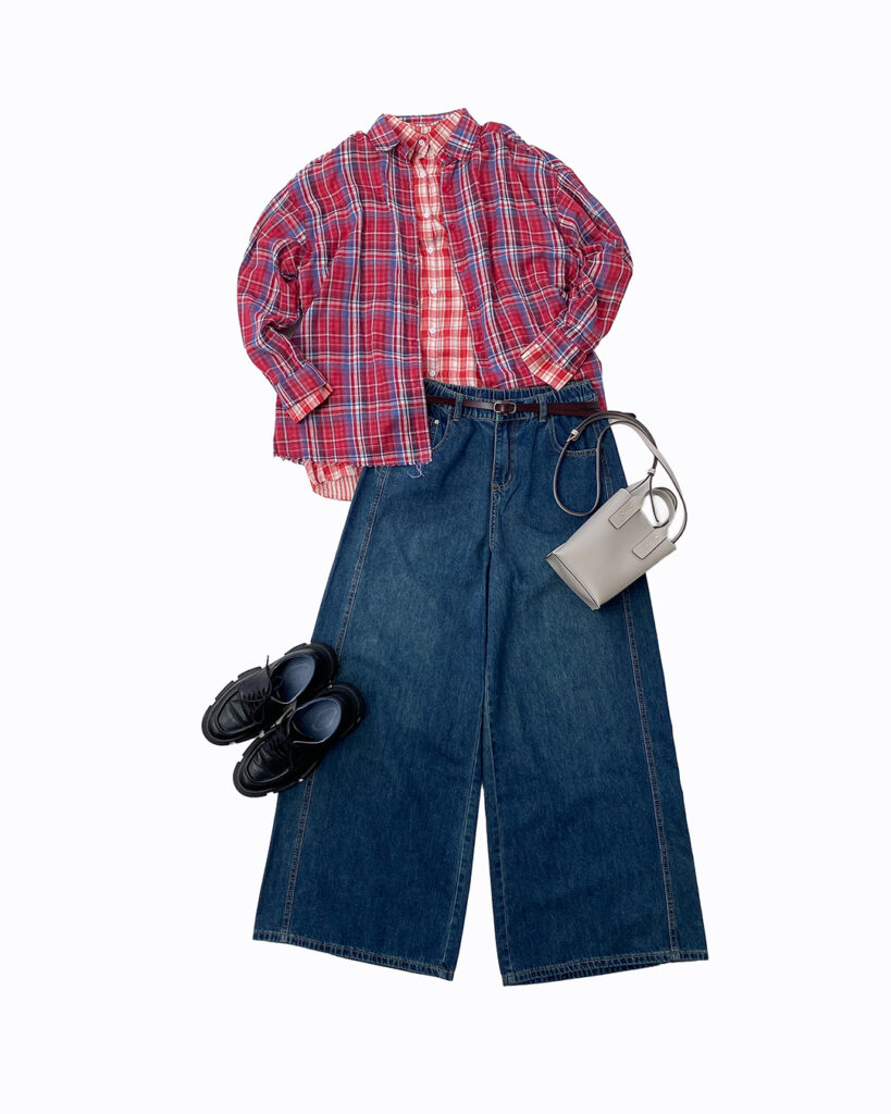 赤チェック×デニムは