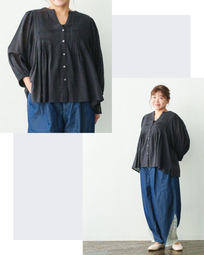 前後に取ったピンタックが縦ラインを強調し