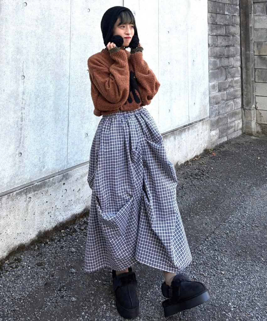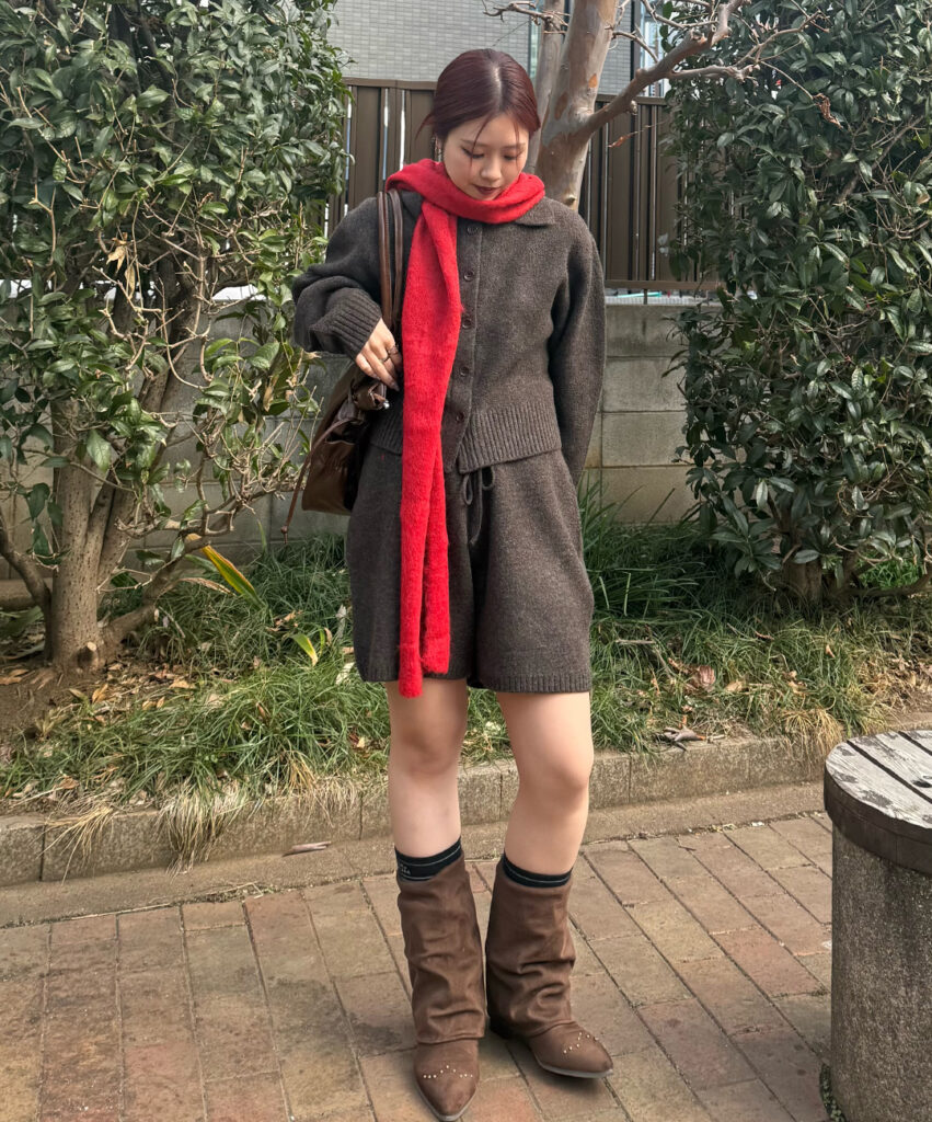 差し色マフラーやイヤーマフなど