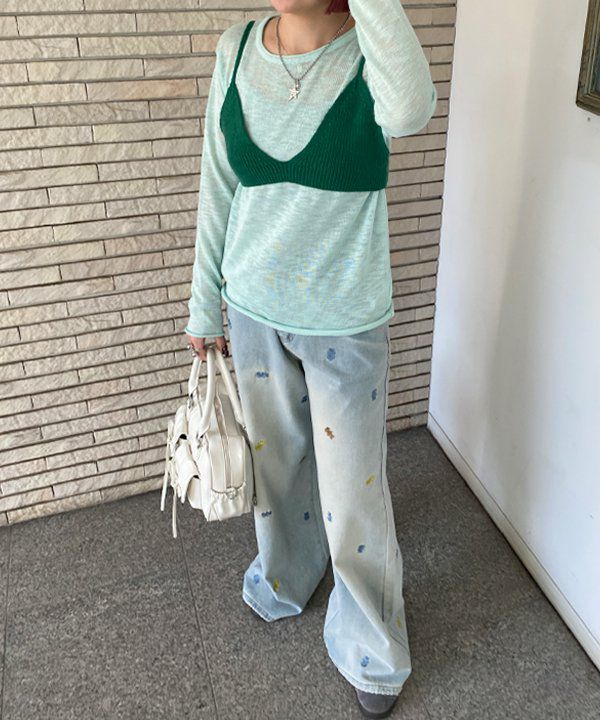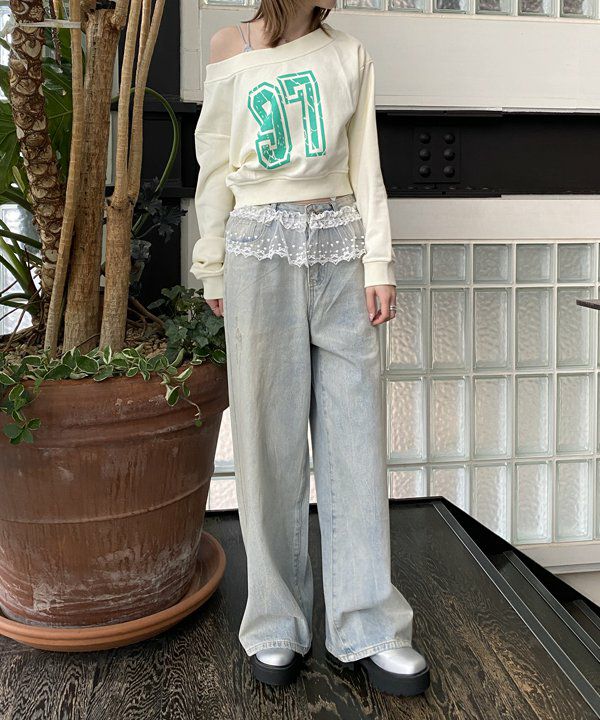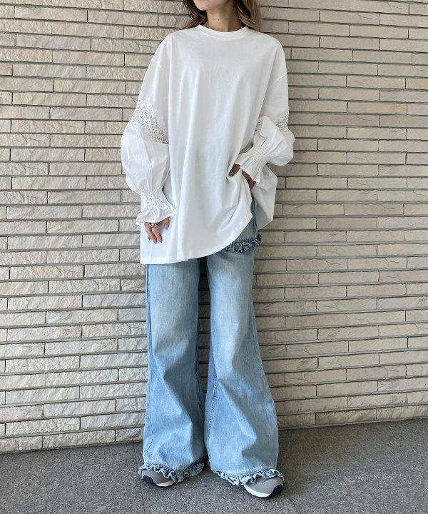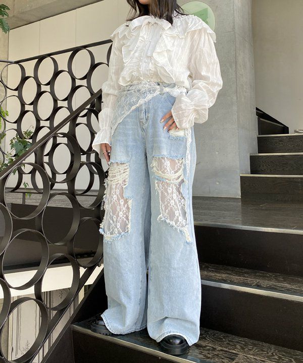 総レースのデニムPT