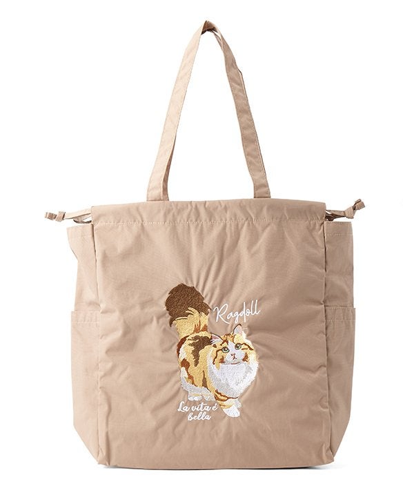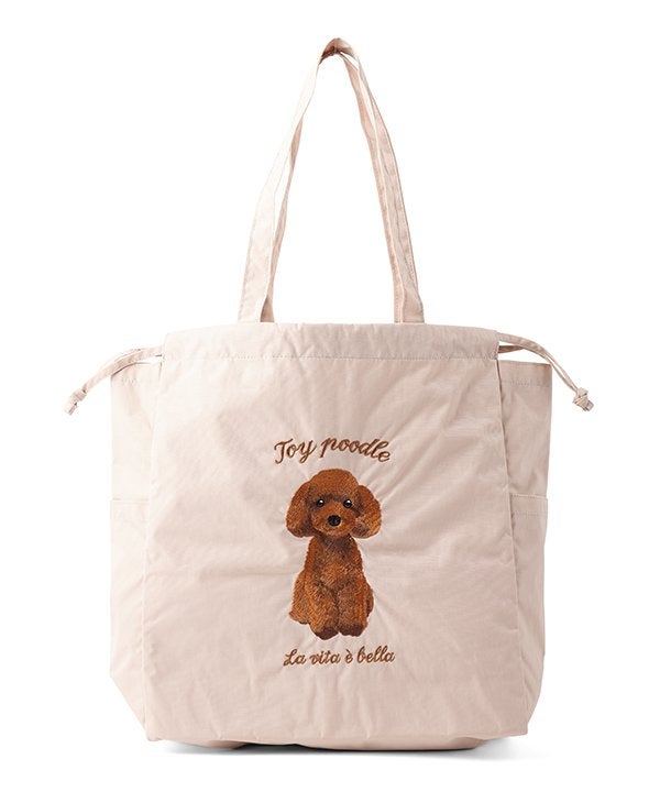 アニマル刺繍巾着トート