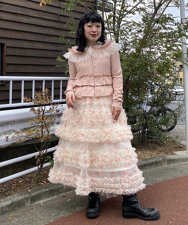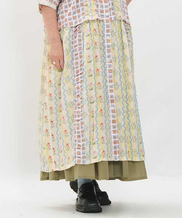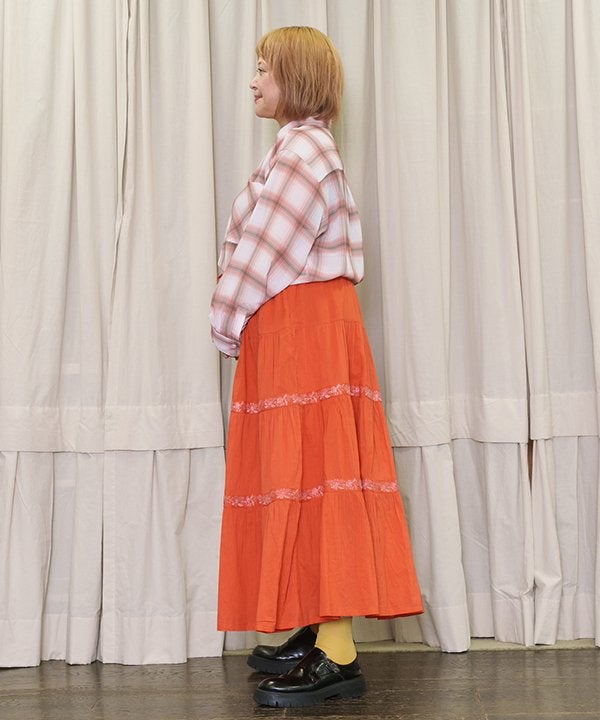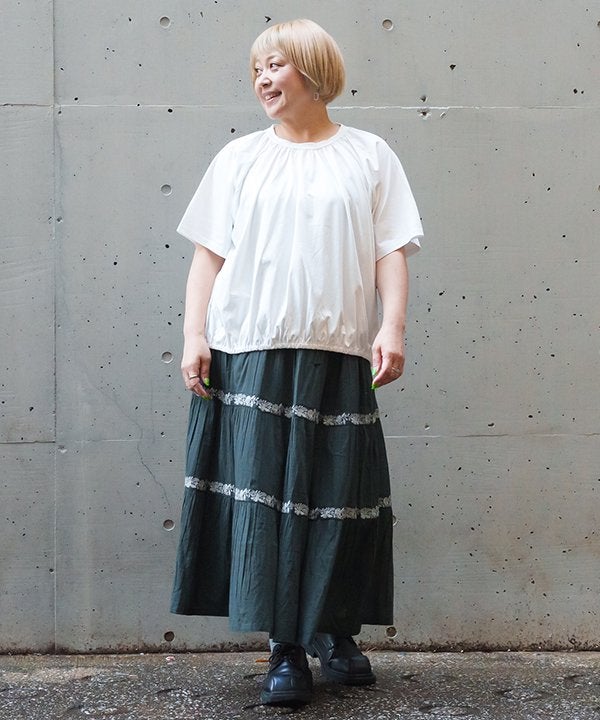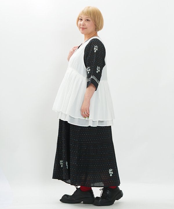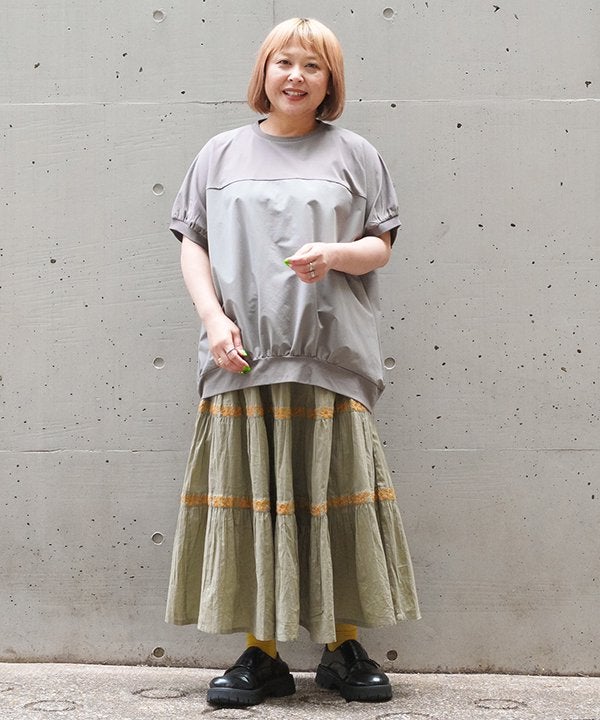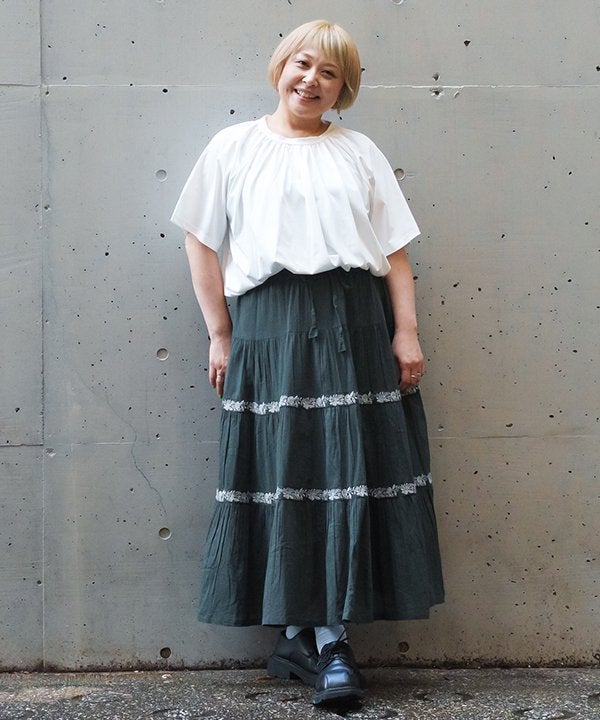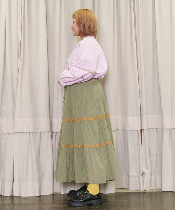 ラインで刺繍でギャザSK