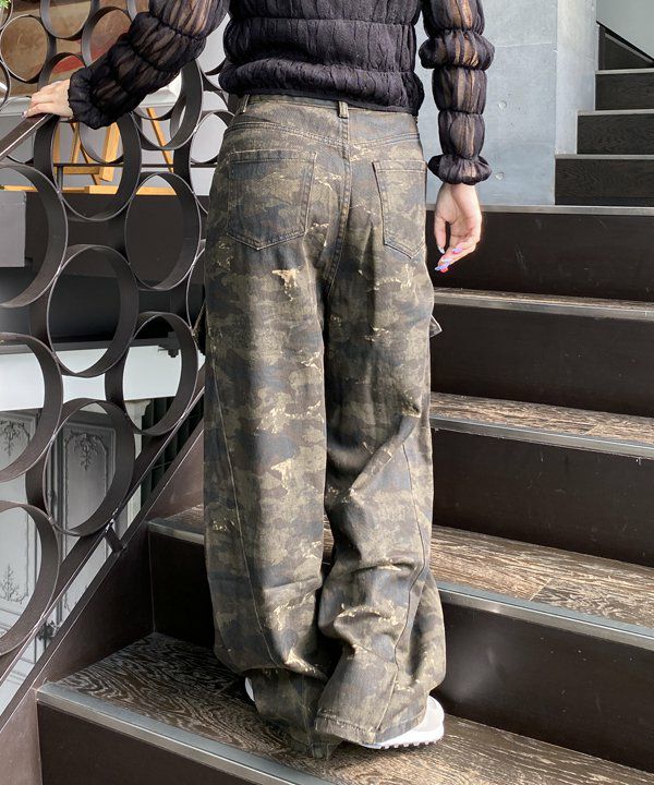 細かいダメージ配色デニム