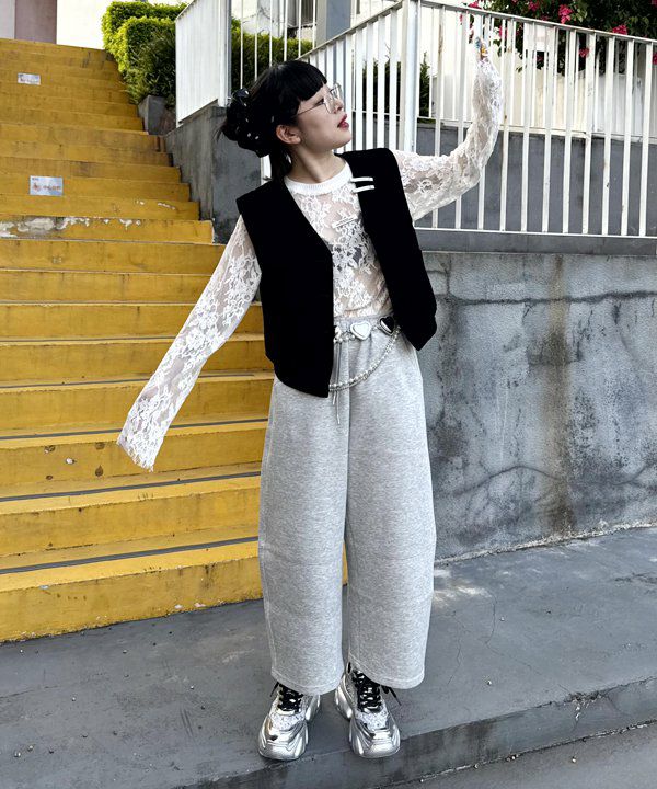 総レースのデニムPT