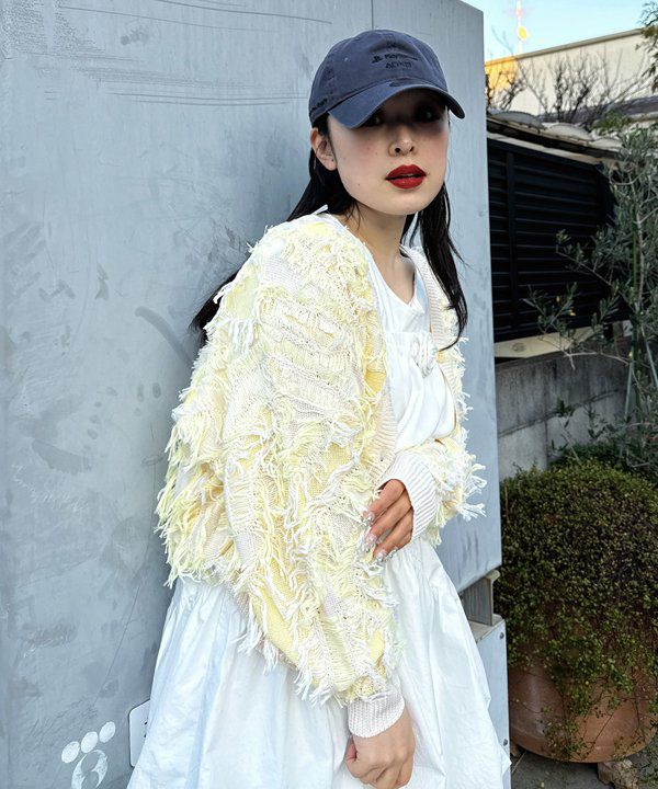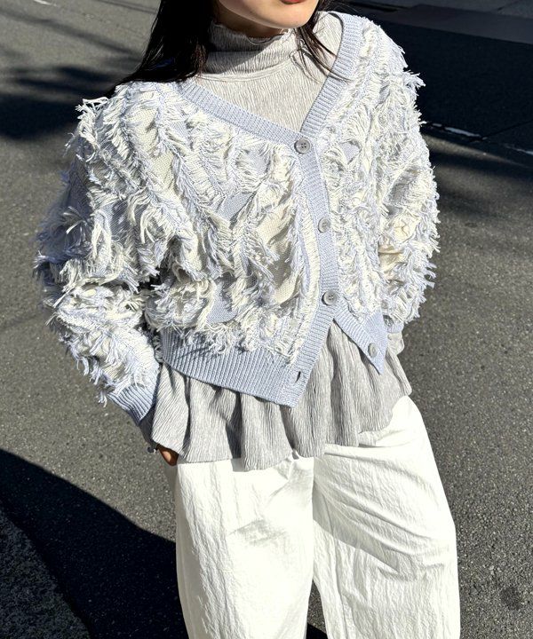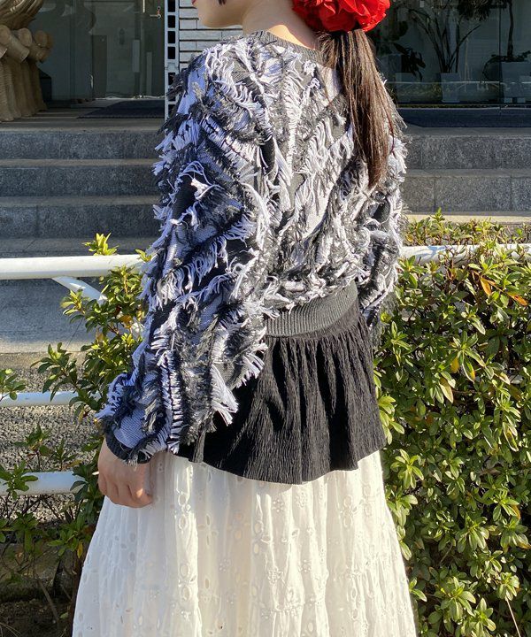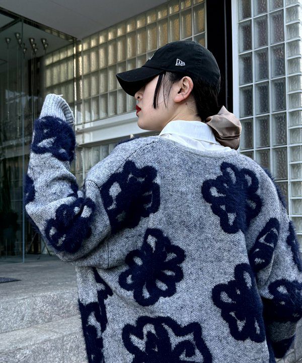 フェザー花柄ミドルカーデ