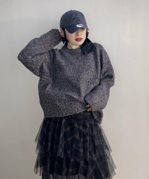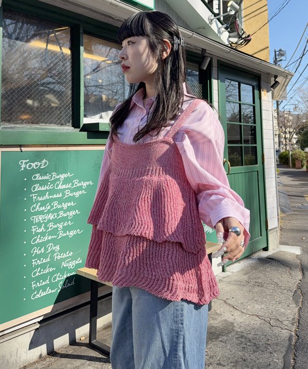 ニットでフリルキャミ