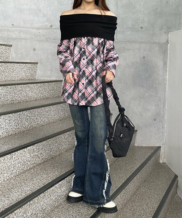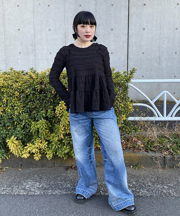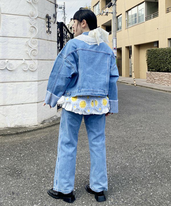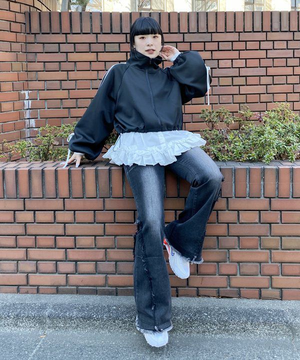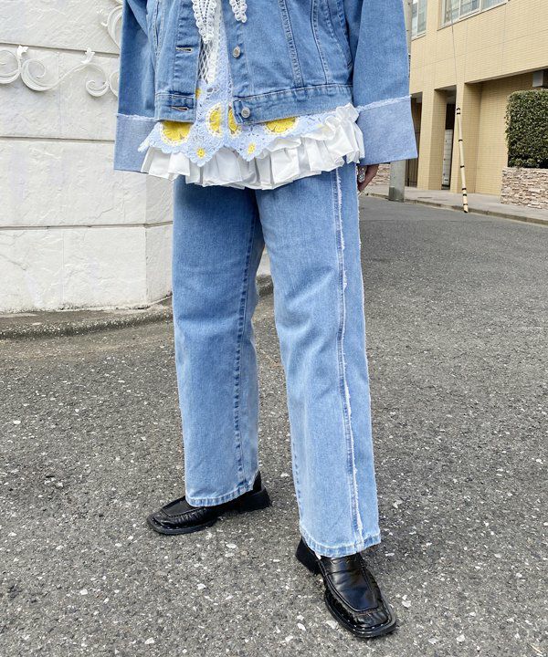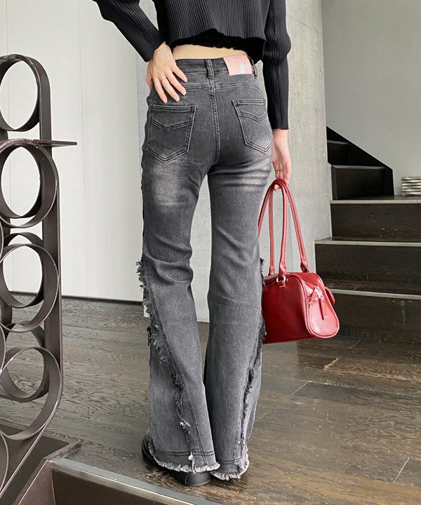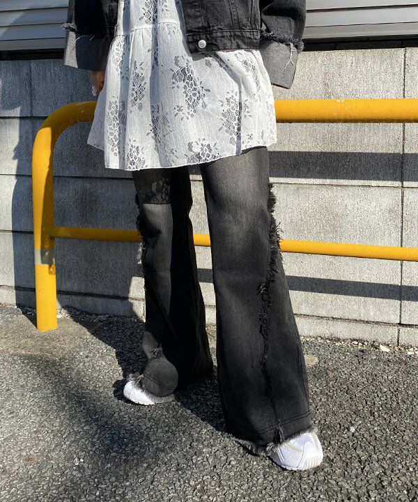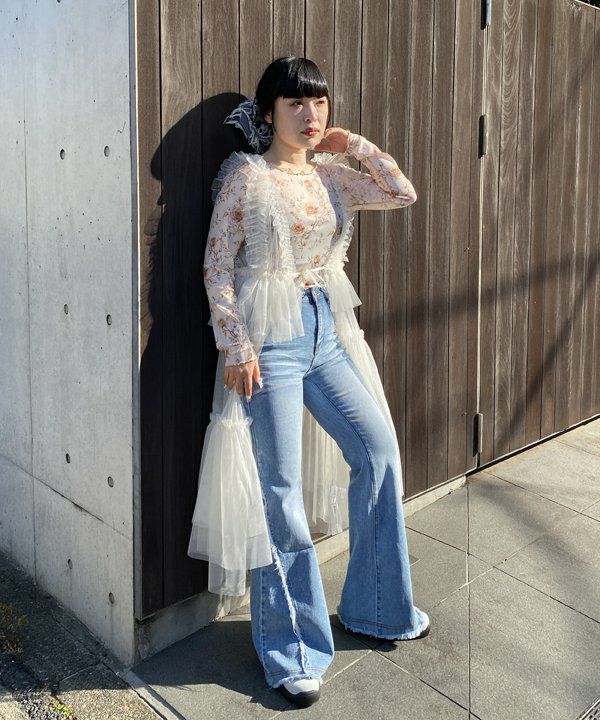裾フリフレアデニム